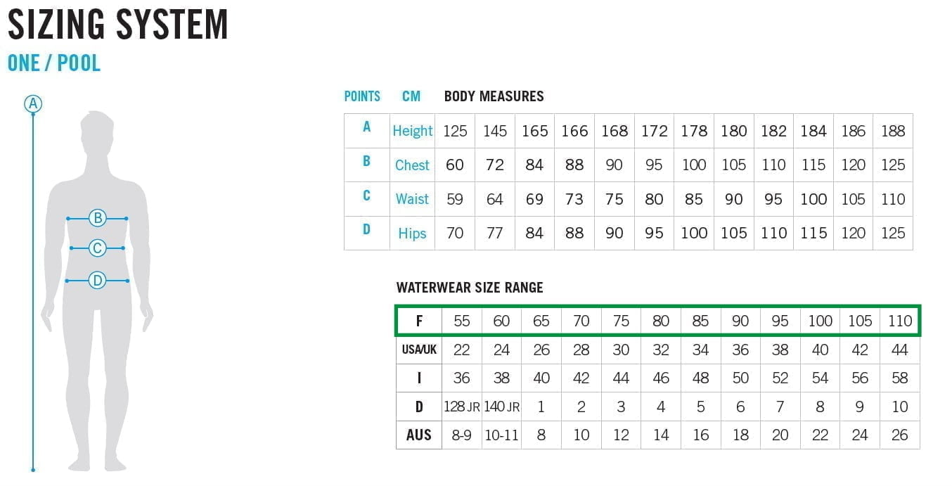 | SPEEDO | 22 | 24 | 26 | 28 | 30 | 32 | 34 | 36 | 38 | 40 | 42 | 44 | 46 |
